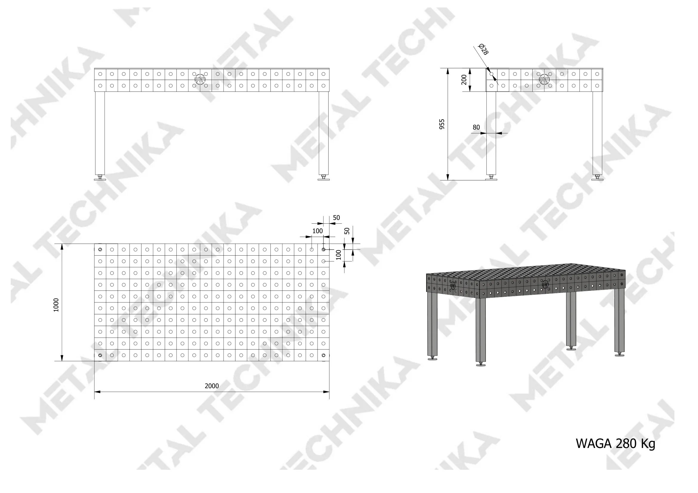 Perforowany stół spawalniczy zyskuje szczególną stabilność dzięki dużej wadze i blatowi roboczemu wzmocnionemu żebrami tej samej grubości blachy co blat. Dzięki temu nadaje się do wszystkich procesów spawalniczych i wielu innych projektów warsztatowych. Dzięki otworom o średnicy 16 mm /28mm można łatwo przymocować elementy ustalające oraz mocujące.