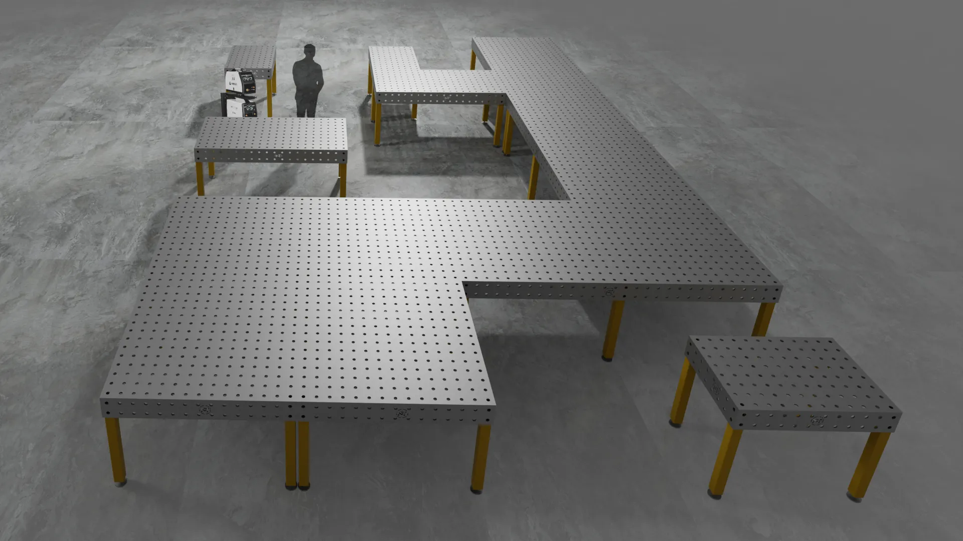 Konstrukcja i ustawienie elementów potrzebnych do spawania są uproszczone dzięki zastosowaniu dodatkowych narzędzi, takich jak kątowniki, winkle, stopery, itp. Dzięki praktycznej konstrukcji elementy zaciskowe i pomoce mocujące można mocować nie tylko do blatu, ale także do boków stołu, co umożliwia pracę zarówno w poziomie, jak i w pionie.