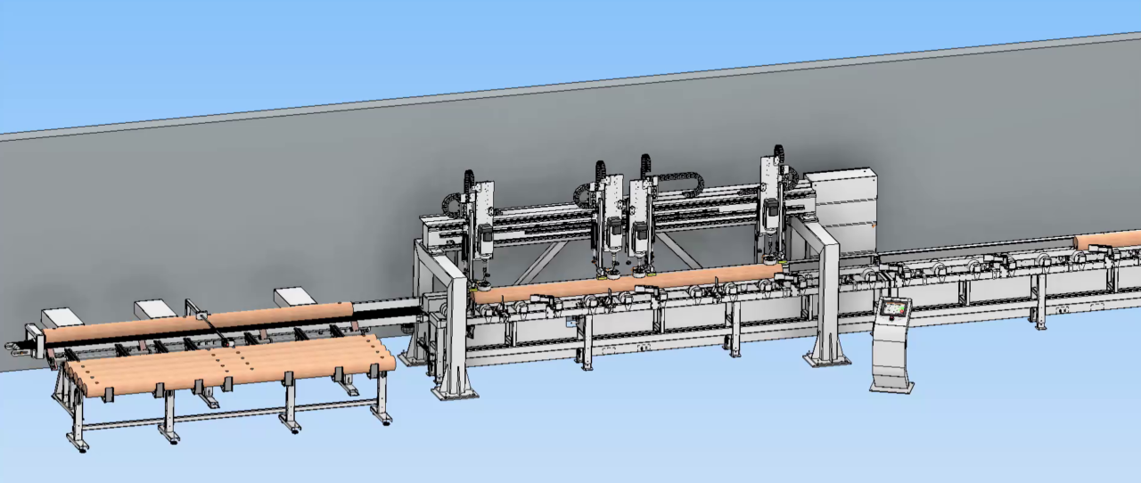 W tym układzie materiał najpierw trafia na piłę optymalizującą, która dociąga element idealnie na wymiar, eliminując wady strukturalne drewna. Tak przygotowany, sformatowany krawędziak czy deska, trafia bezpośrednio na wiertarkę. Dzięki temu mamy pewność, że baza do wiercenia jest zawsze identyczna. Zautomatyzowanie przenoszenia materiału między stoiskami nie tylko przyspiesza pracę, ale pozwala na obsługę linii przez mniejszą liczbę operatorów, co jest kluczowe w obliczu braków kadrowych w branży.